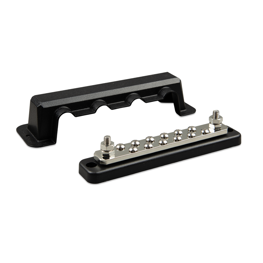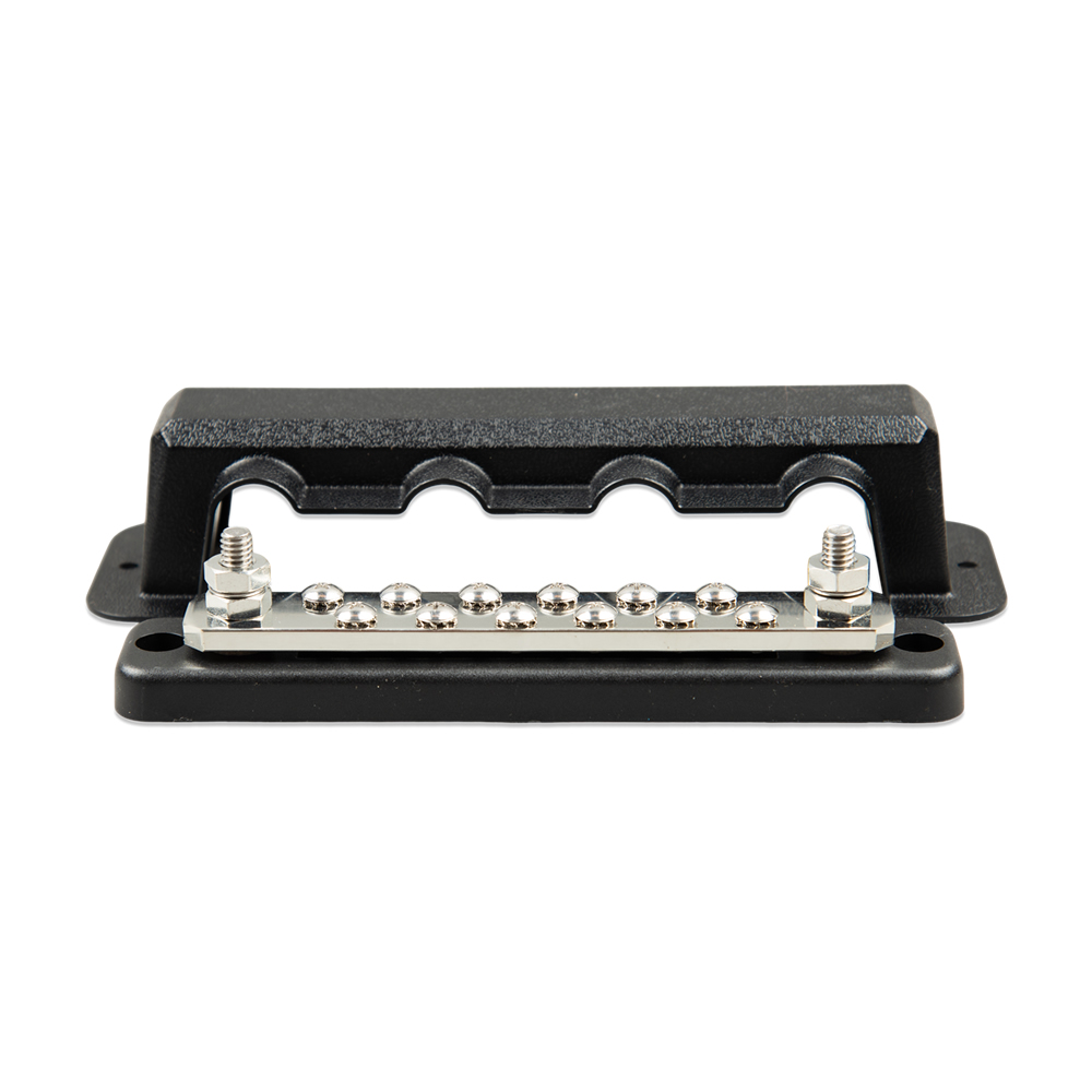 El Busbar 250A 2P con 12 tornillos y cubierta de Victron Energy es un distribuidor de corriente de alta capacidad diseñado para la gestión segura y eficiente de conexiones eléctricas en sistemas de energía. Con una capacidad de 250A y 2 polos (2P), es ideal para aplicaciones en sistemas solares, marinos, automotrices e industriales donde se requiere una distribución de corriente confiable y bien organizada.