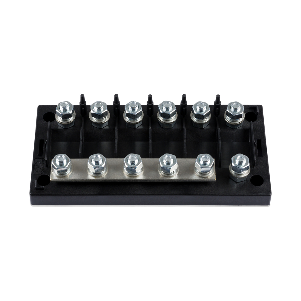 El porta fusibles de 6 vías para fusibles MEGA de Victron Energy es una solución ideal para organizar y proteger múltiples fusibles MEGA en sistemas eléctricos. Este portafusibles permite la instalación de hasta 6 fusibles MEGA de manera segura y eficiente, asegurando una distribución ordenada de la corriente y protegiendo los circuitos contra sobrecargas o cortocircuitos.